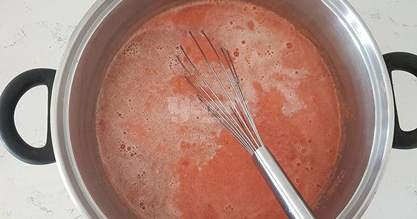 44 su bardağı sıcak et suyunu ve 2 çay kaşığı tuzu ekleyin. Ayrı bir tencerede 2 çay bardağı sütü ısıtın ve yavaş yavaş, sürekli karıştırarak çorbaya ekleyin.