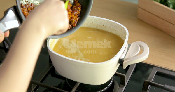 8Hazırlanan kavurma karışımını mercimekli tencereye ekleyip iyice karıştırın ve 10 dakika daha pişirin.