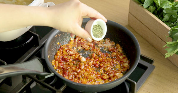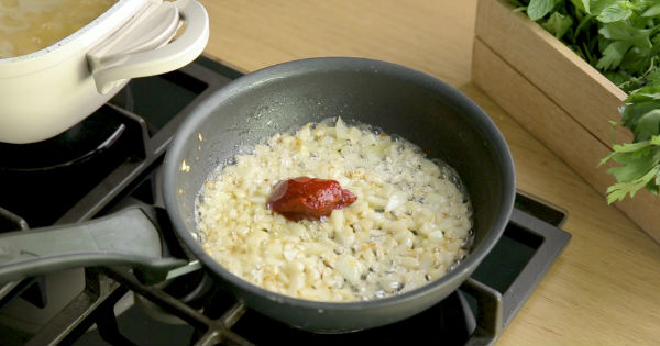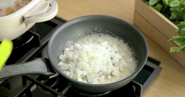 5Küp küp doğranmış kuru soğanı ekleyip kavurun.
