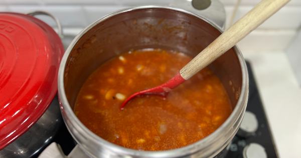 3Salçayı ekleyip kavurmaya devam edin. Fasulyeleri ekleyin.