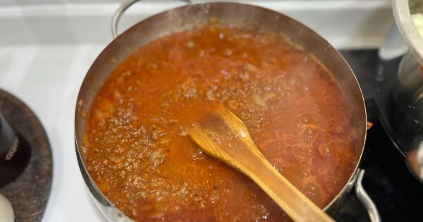 6Fırın kabınıza önce haşladığınız karnabaharı, ardından kıymalı sosu son olarak beşamel sosu ilave edin.