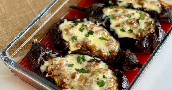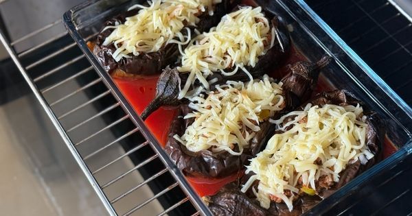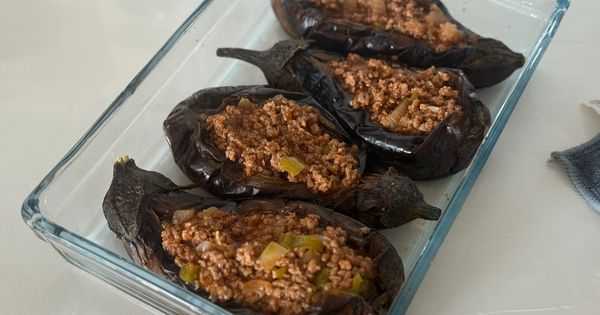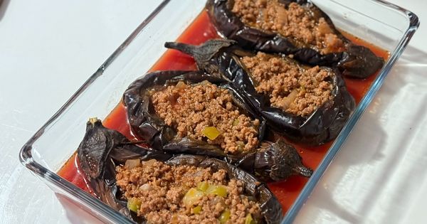 4Patlıcanların ortalarını açıp içine harçtan ekleyin.