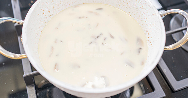 10Son olarak çorbaya krema ekledikten sonra 10 dakika daha orta ateşte pişirin.