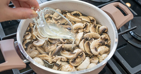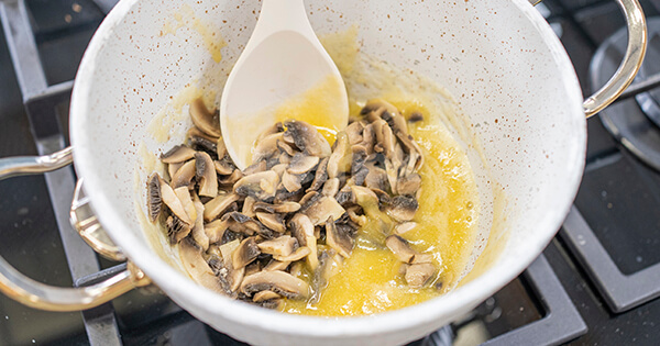 7Dilimlenmiş mantarları ekleyin ve 3 dakika kadar kavurun.