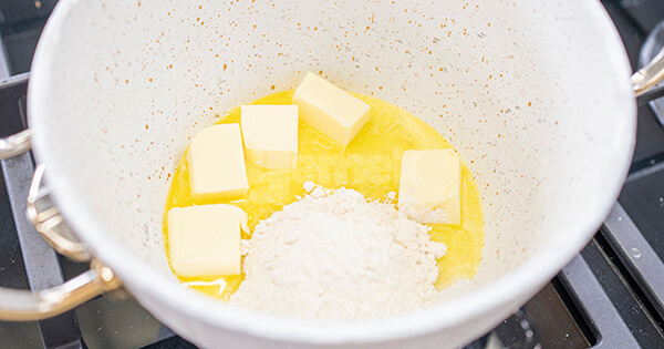 5Tereyağını tencerede eritin ve unu ekleyin. Kokusu çıkana kadar kavurun.