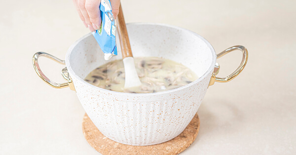 9Çorba kaynadıktan sonra ocaktan alıp kremayı azar azar ekleyin ve sürekli olarak karıştırın.