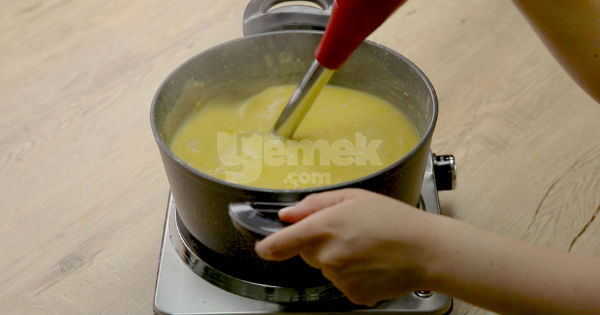 6El blenderi ile çorbayı pürüzsüz hale getirin. 5 dakika daha pişirip ocaktan alın.