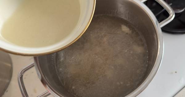 3Haşlama suyunu süzmeden tencerede bırakın; et suyu çorbada kullanılacak.