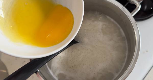 6Yumurta sarısı ve limon suyunu ayrı bir kasede karıştırın. Unlu karışıma azar azar paça suyundan ilave ederek ılıtın.