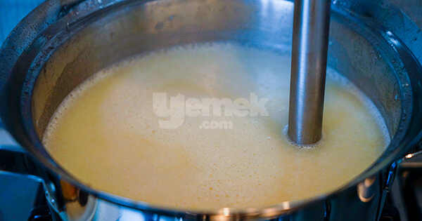 4Patatesler yumuşadıktan sonra blender ile pürüzsüz hale getirin.