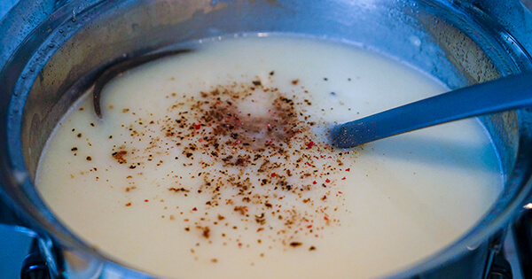 5Kaynayan çorba karışımına tuz, taze çekilmiş tane karabiber ve sütü azar azar katıp, hızlıca karıştırın.