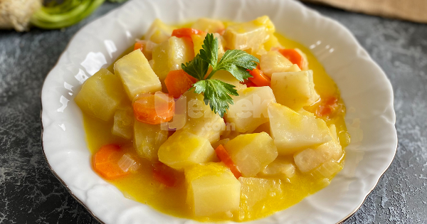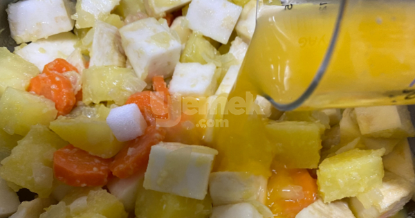 7Pişen portakallı kereviz yemeğini dinlendikten sonra tabağa alıp servis edebilirsiniz. Afiyet olsun.