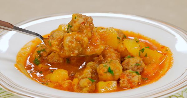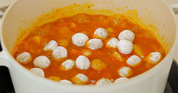 6Su kaynadığında köfteleri ekleyin. Orta ateşte kapağı aralık olarak pişirin.