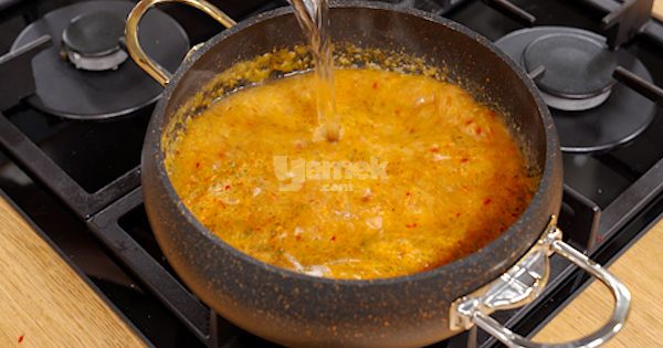 4Kalan 5 su bardağı suyu ekleyin. Ara sıra karıştırarak koyulaşana kadar pişirin.