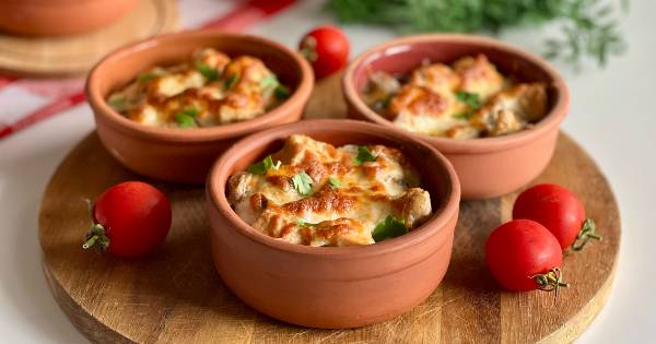 4Son olarak baharatları ve kremayı ilave edin ve altını kapatın. Güveçlere pay edin. Üzerine kaşar peyniri rendesi ekleyip tekrar fırına verin.